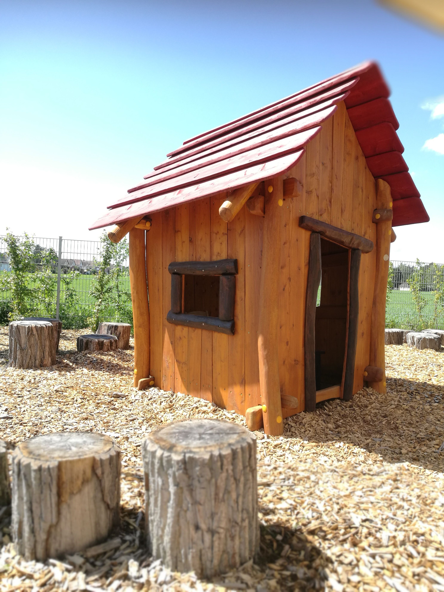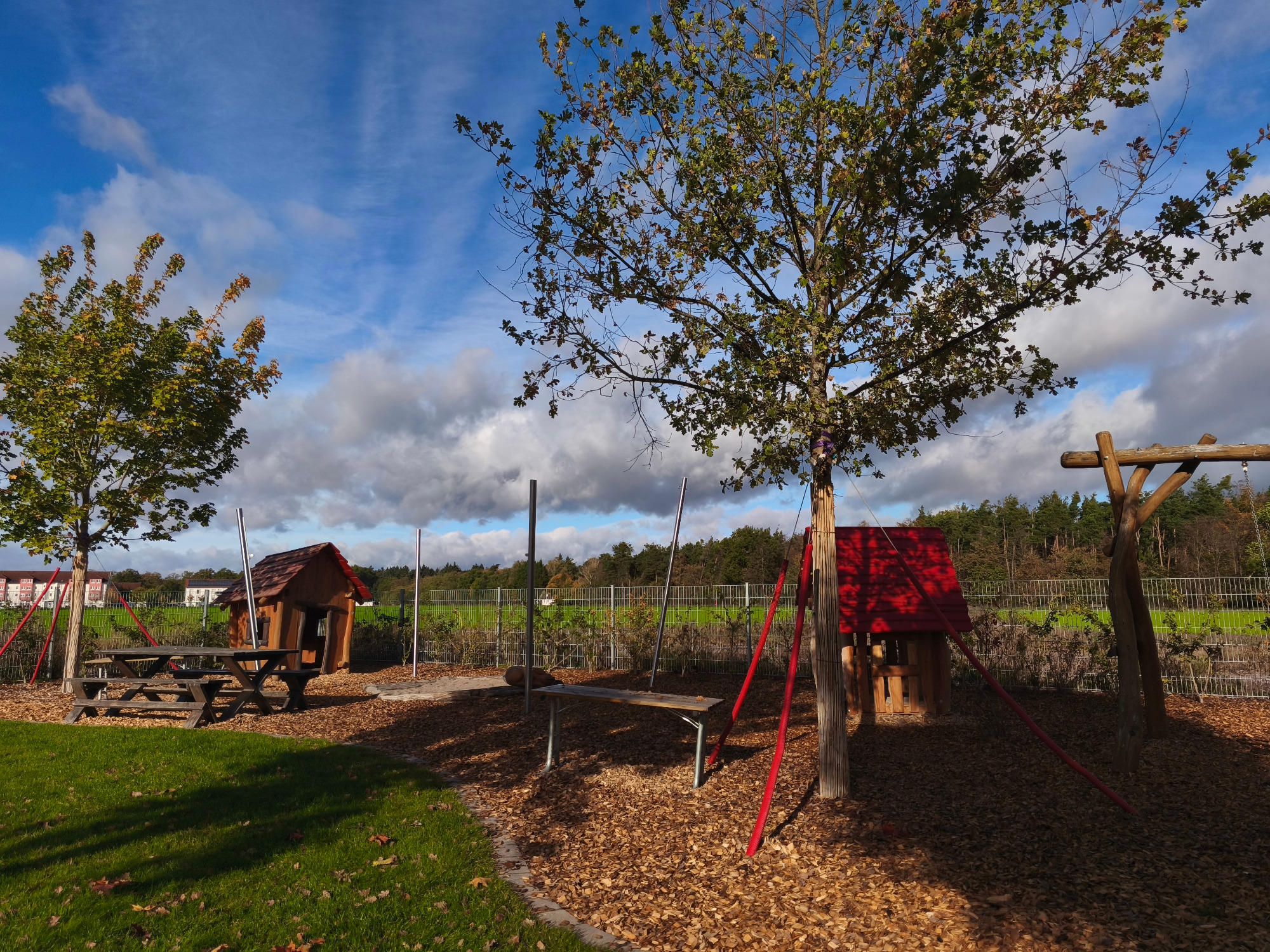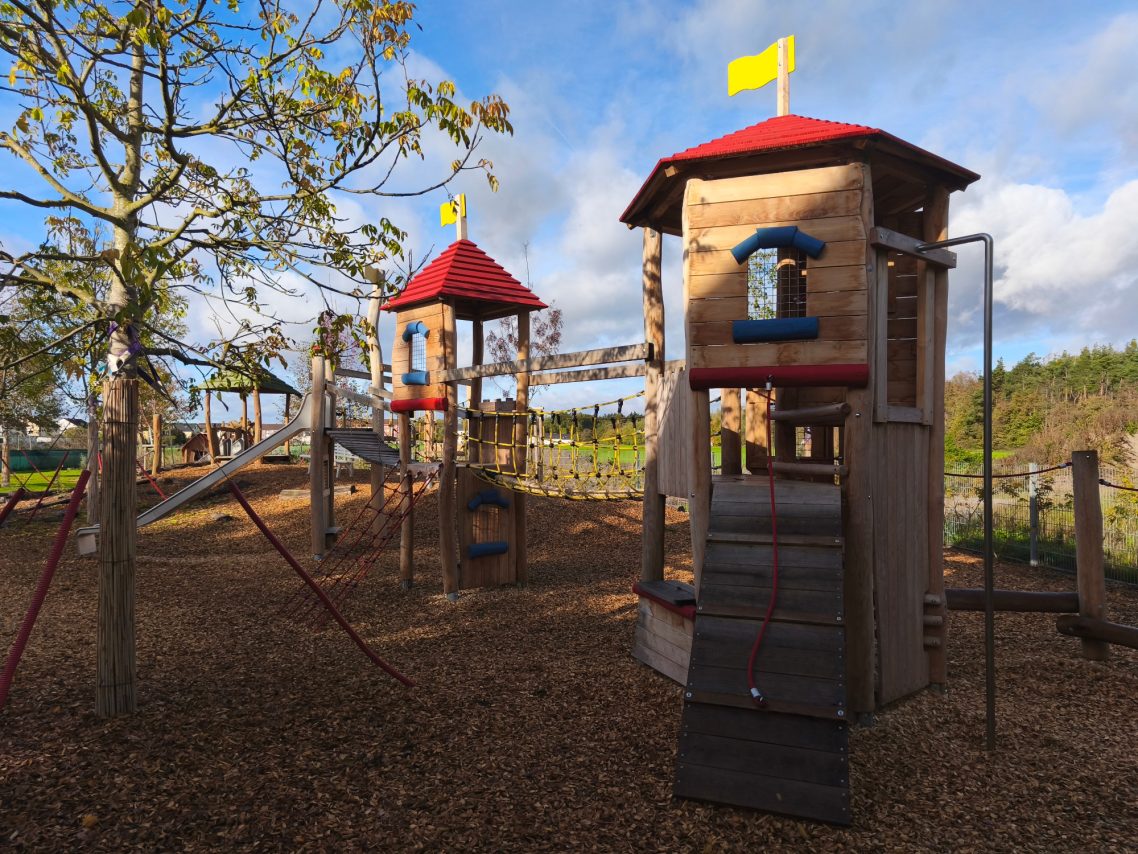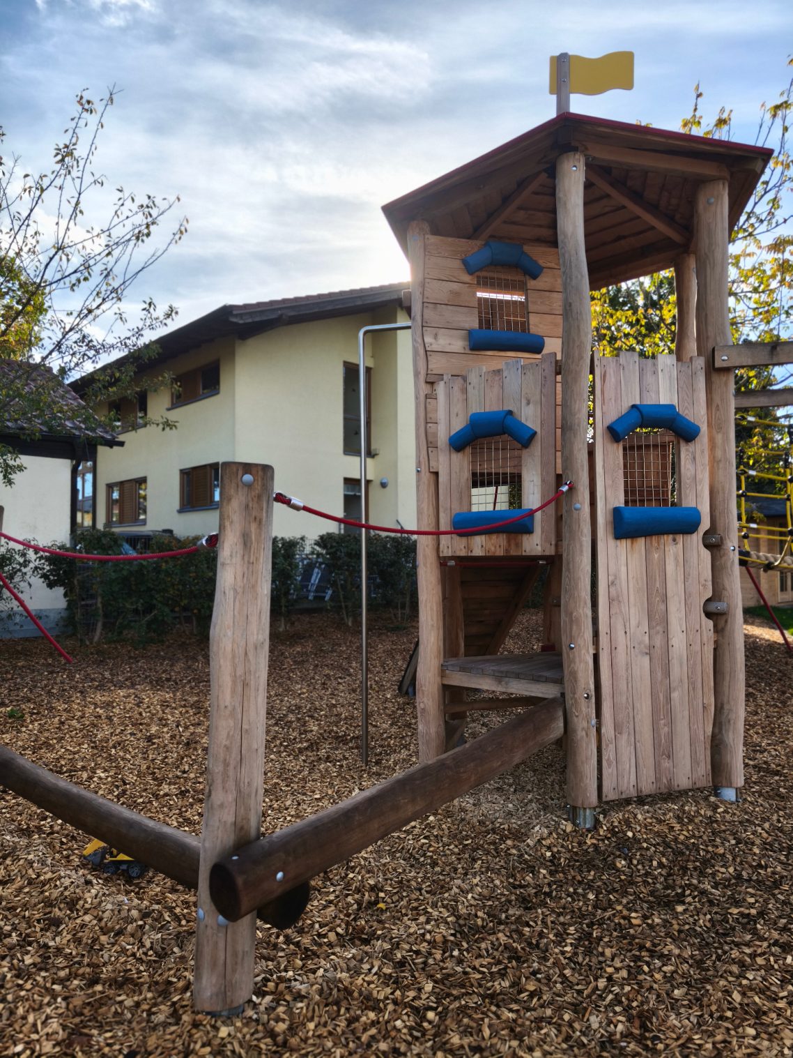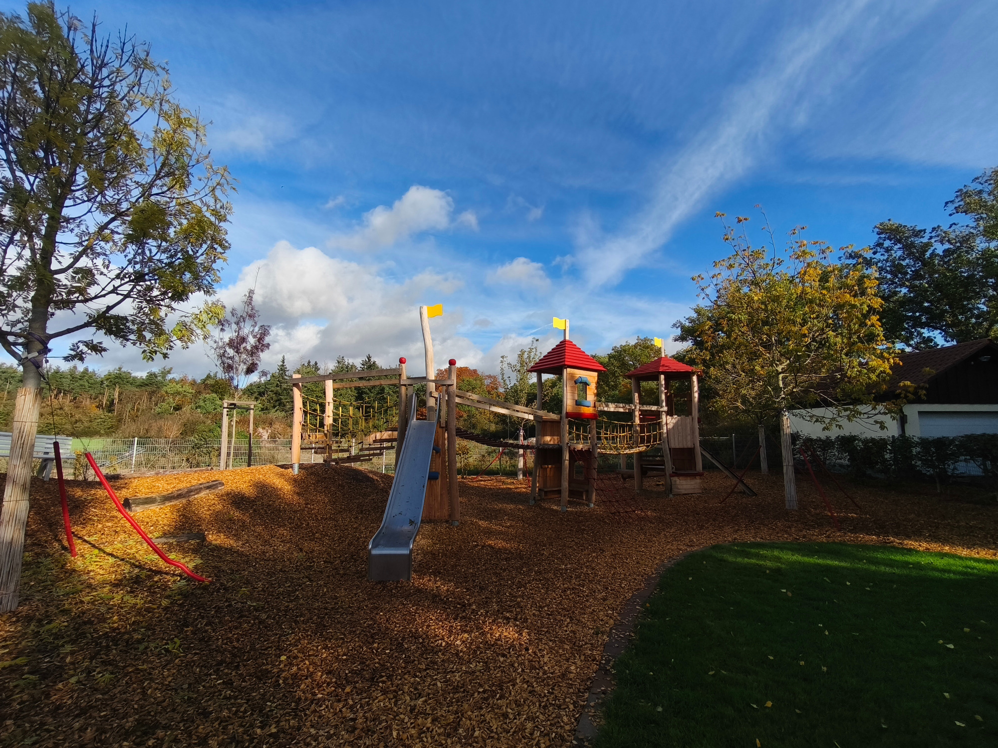 Unser großzügiges, naturnahes Außengelände verfügt über großzügige Rasenflächen, Matschplatz, Sandkästen, gepflasterten Wegen, auf welchem die Kinder mit verschiedenen Fahrzeugen fahren könne und über vielfältige Spielmöglichkeiten und -geräte.